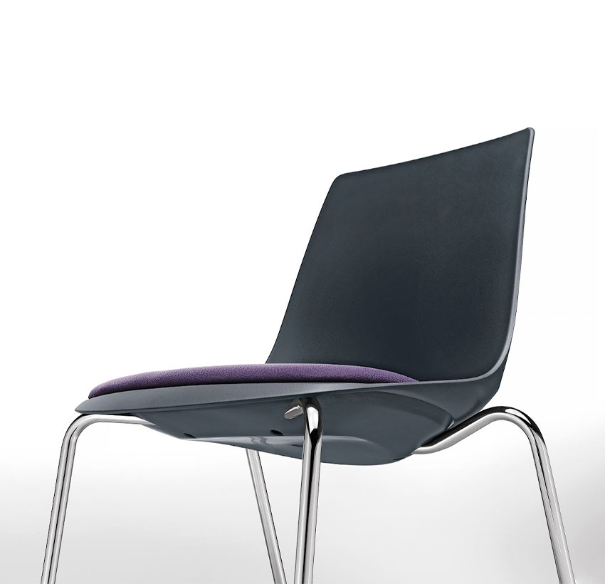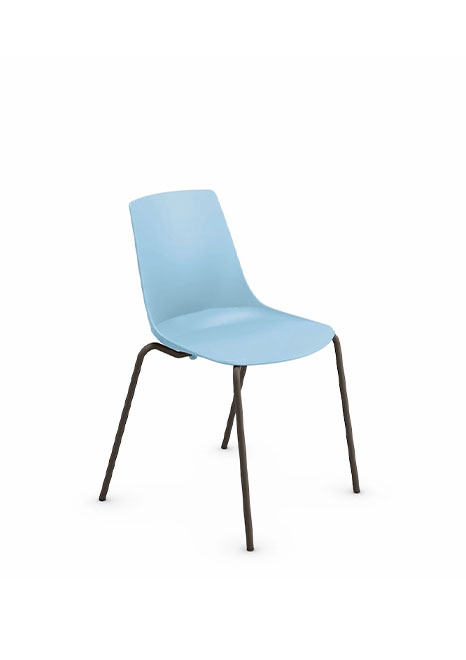 VERSIONS: 4 pés, 4 pieds, tige ou cadre rond COQUE SIMPLE: En polypropylène et fibre de verre
