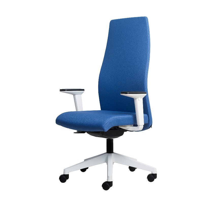 DOSSIER: Haut ou moyen en mousse moulée ASSISE: Mousse moulée BASE RONDE: Pyramidale noire ou blanche MÉCANISME: Syncron BRAS: Bras réglables en hauteur noirs ou blancs
