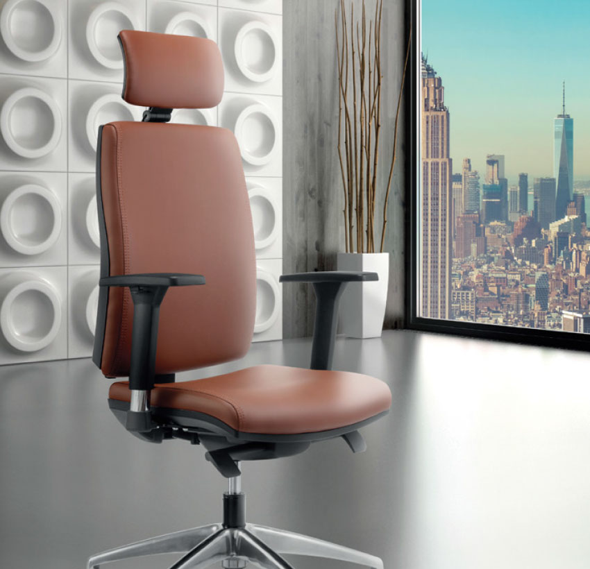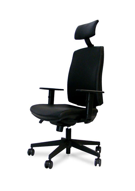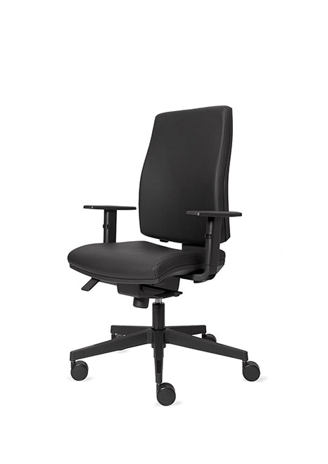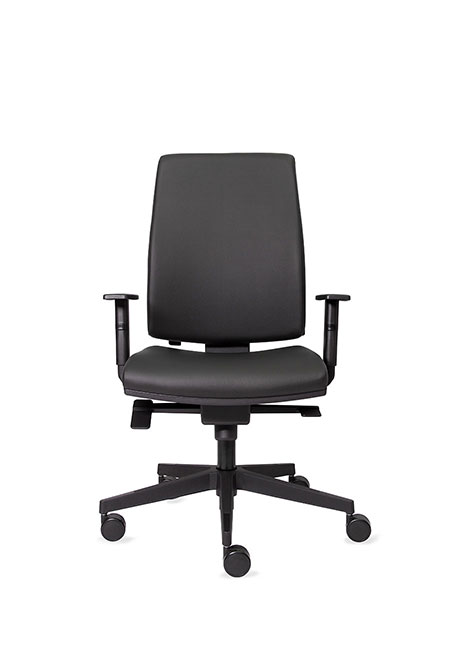 DOSSIER: Haut ou moyen réglable en hauteur ASSISE: Recouvert de rembourrage en mousse souple BASE: Ronde pyramidale BRAS: Fixes en T MÉCANISME: Syncron OPTIONNEL: Appui-tête