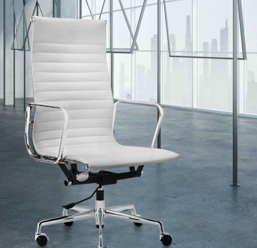 REVÊTEMENT: - En cuir véritable ou synthétique blanc ou noir DOSSIER: Élevé ou Moyen BRAS: Fixes en aluminium chromé BASE: Aluminium chromé. Ronde ou avec des patères MECANISMES: Oscillant