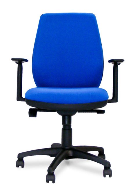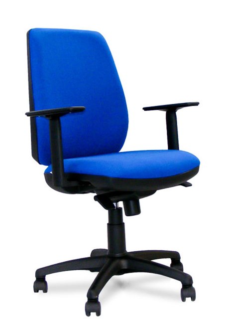 DOSSIER: Haut rembourré réglable en hauteur ASSISE: Rembourrée BASE RONDE: Noire MÉCANISME: Contact permanent ou Syncron