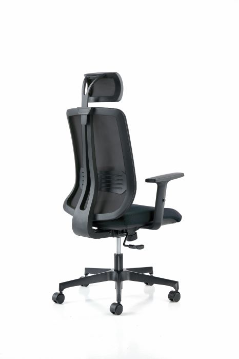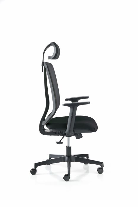 DOSSIER: Filet gris ou noir. Appui lombaire réglable ASSISE: Recouvert en mousse souple BRAS: Réglable en hauteur BASE: Ronde pyramidale OPTIONNEL: Appui-tête